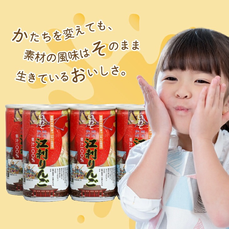 まるで生のりんごを食べているようなジューシーさが決め手!当地江刺の風景を盛り込んだ、賑やかな缶が目印です。