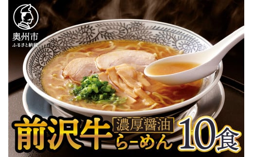 前沢牛らーめん10食入 濃厚醤油スープ 10食 (めん80gスープ40g) ご当地らーめん コシの強い ちぢれ麺 人気 贅沢 ギフト グルメ お中元 お歳暮 のし対応