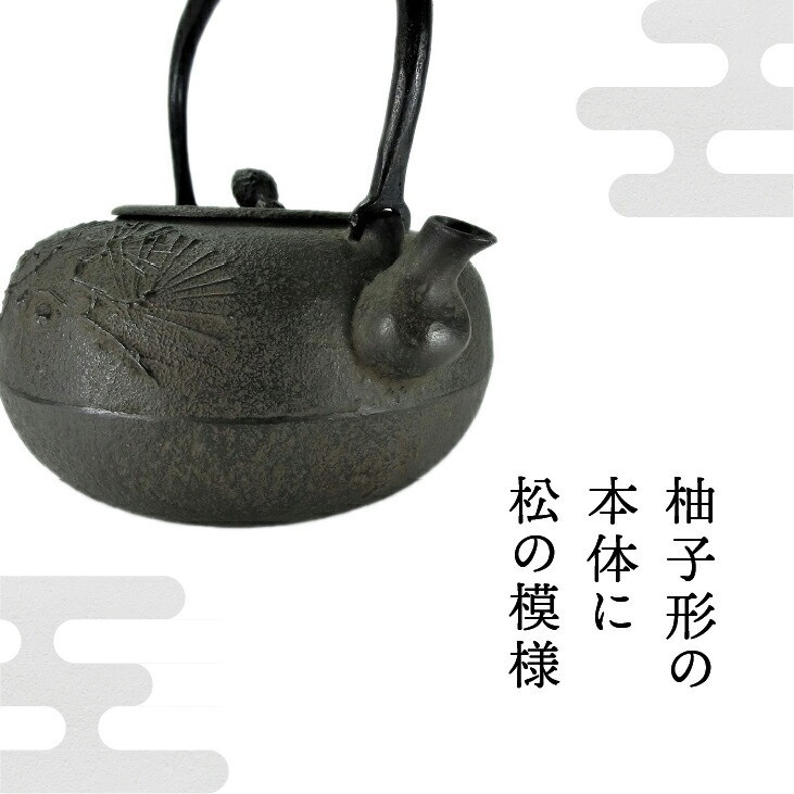 南部鉄器 鉄瓶 柚子形松 1L 【岩戸賢一郎 作】 IH調理器 伝統工芸品 やかん ケトル キッチン用品 食器 日用品 雑貨