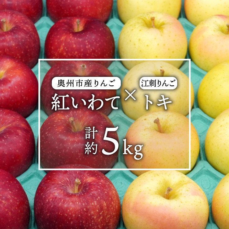 奥州市産りんご(紅いわて)と江刺りんご(トキ)のセット 5kg(14~20玉) 【10月中旬以降お届け】 フルーツ 林檎 離島配送不可
