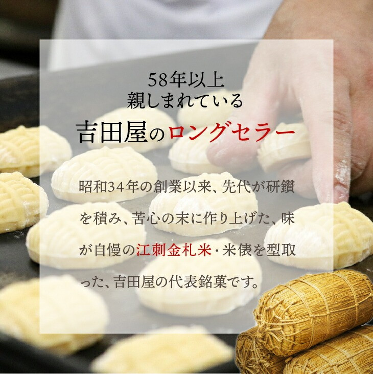 味が自慢の江刺金札米・米俵を型取った、吉田屋の代表銘菓です。