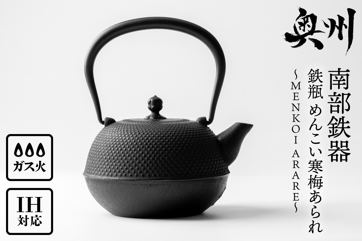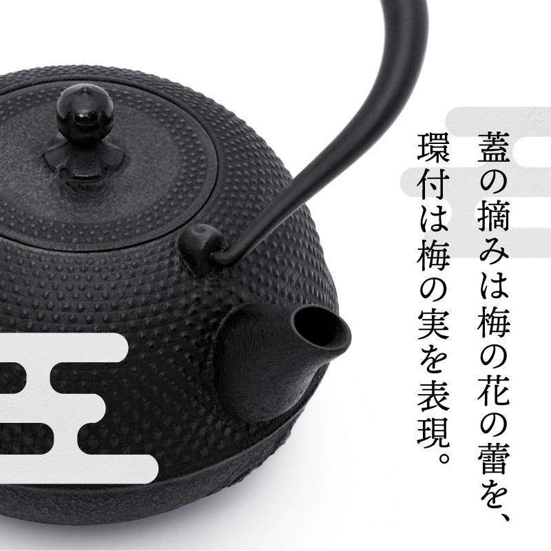 チョイスPayポイントと交換できる品 鐵の質感を鋳肌で表現し、茶の湯釜のわび・さびをイメージして造りました 【4ヶ月以内発送予定】 南部鉄器 鉄瓶 めんこい寒梅あられ鉄瓶 〜MENKOI ARARE〜 0.9L 艶黒色 IH対応 ガス やかん ケトル 日本製 伝統工芸品 白湯 鉄分 鉄分補給 茶器 伝統 職人 岩手県 キッチン用品 食器 日用品 雑貨 おしゃれ 贈答 プレゼント お祝い 誕生日 結婚 [BE003]