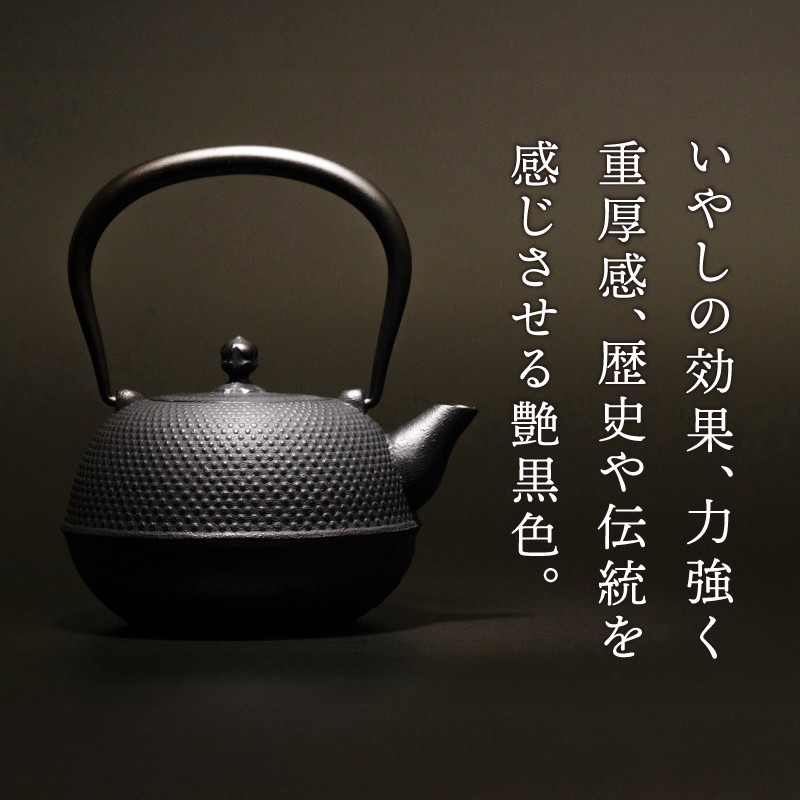 認知度が高い伝統の「あられ模様」と高級感の溢れる「漆黒」カラーの鉄瓶です。