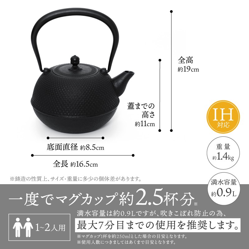 茶こしが付属するため、急須としても使用可能な小ぶりの鉄瓶です。