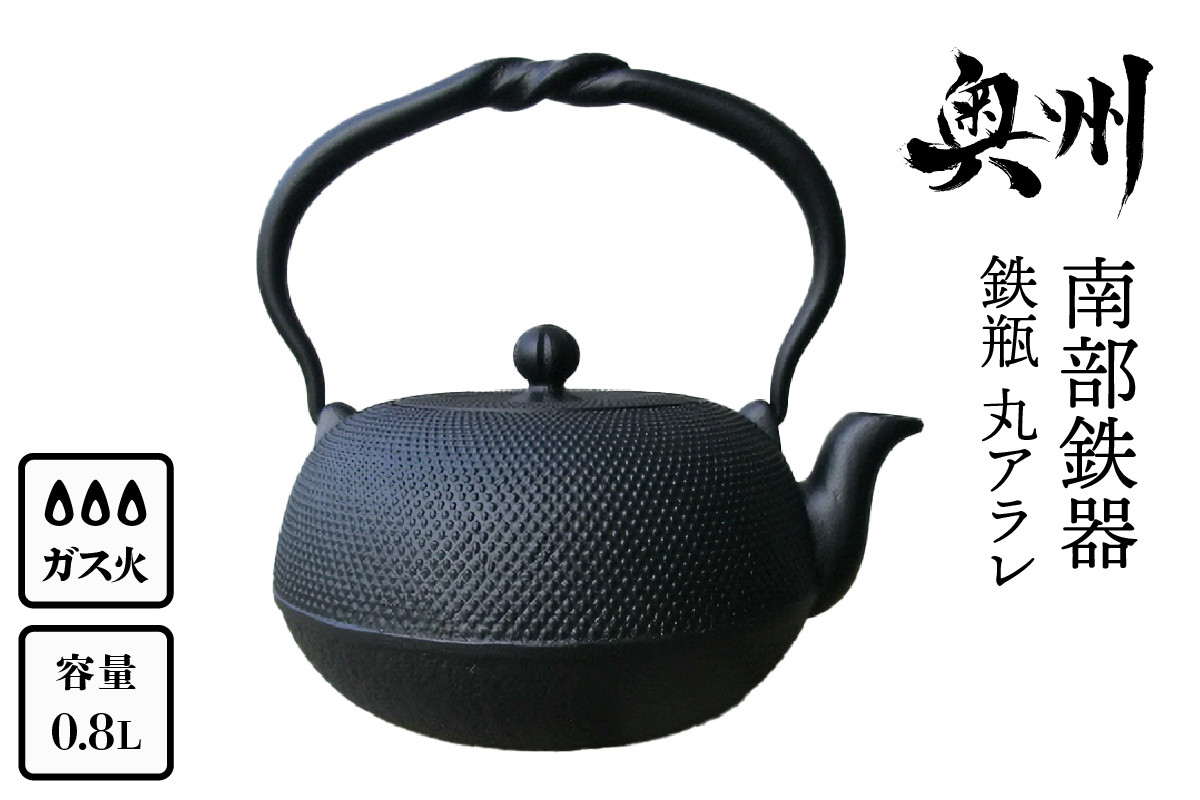 南部鉄器 鉄瓶 丸アラレ 0.8L 【 及甚 作】 直火 ガスレンジ 伝統工芸品 アラレ模様 やかん ケトル キッチン用品 食器 日用品 雑貨