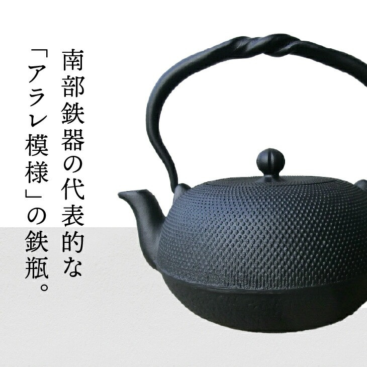 南部鉄器の代表的な模様、アラレ模様の鉄瓶です。