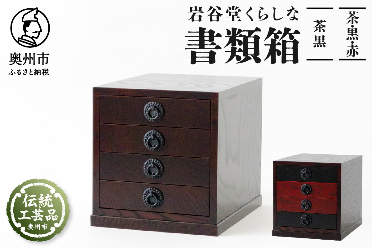 岩谷堂くらしな 書類箱 茶黒 / 茶 黒 赤 岩谷堂箪笥 職人製作 伝統工芸品 モダンな和家具 和タンス インテリア 日本製 岩手県奥州市産
