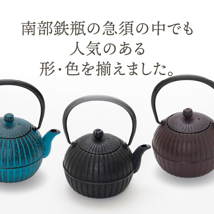 南部鉄瓶の急須の中でも人気のある形・色を揃えました。水色・紫も色違いで出品しております。