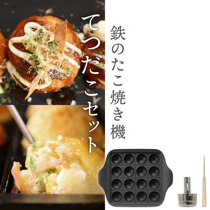 南部鉄器 鉄のたこ焼き器 てつだこセット 伝統工芸品 【OIGEN 作】 たこ焼き タコパ ガス 直火 油引き 千枚通し 日本製 伝統 キッチン用品 キッチングッズ キッチンツール 調理器具 調理器 日用品 キャンプ アウトドア