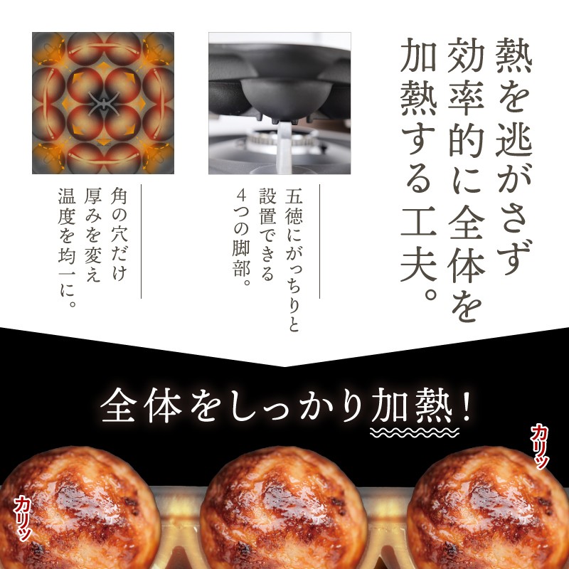 外カリっ、中とろっ、大玉で、まんまる。理想の本格たこ焼きがやける鉄のたこ焼き器。