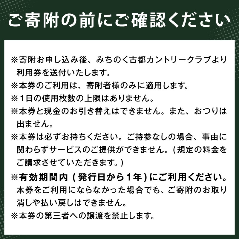※寄附お申し込み後、みちのく古都カントリークラブより利用券を送付いたします。