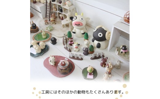 作品のジャンルは広く、食器、花瓶、プランターなどの他に、「森のメッセンジャー」と名付けた、森に生きる動物たちをモチーフにした小さな置物、うさぎをモチーフにした食器、花瓶、プランター、リアルなうさぎの置物などがあります。