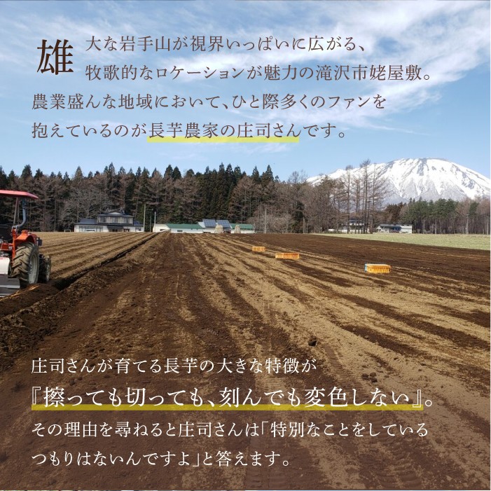 そんな庄司さんが代表を務めるマル庄より、長芋を土付きでお送りいたします。