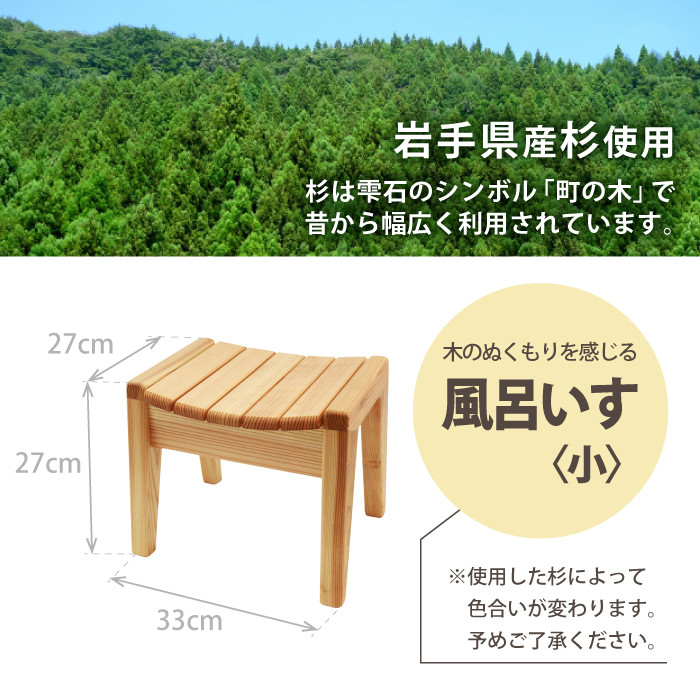 風呂いす(小) 【おりつめ木工】 いす 椅子 イス バスチェア 浴室 お風呂の椅子 風呂椅子 木製 すべすべ つるつるしない すべらない 手作り 杉 スギ 小さいサイズ 小さめ 岩手県 雫石町 送料無料