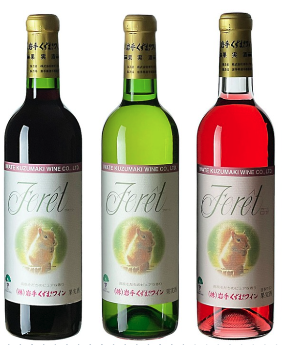 リスのラベルが目印の、くずまきワイン「フォーレ」シリーズ。葛巻町が、総面積の8割以上が林野であることから名付けられたこのシリーズは、くずまきワインの定番品です。