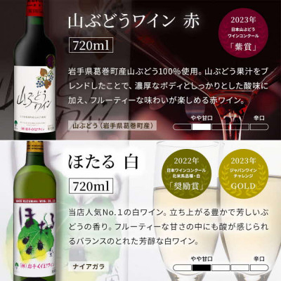 | 容量 | ■お礼品の内容について ・ほたる(白)[720ml×1] 加工地:岩手県葛巻町 ・山ぶどうワイン[720ml×1] 加工地:岩手県葛巻町 ・クリームチーズ(プレーン味)[100g×1] 製造地:岩手県葛巻町 賞味期限:発送日から10日 ・ゴーダチーズ[125g×1] 製造地:岩手県葛巻町 賞味期限:発送日から30日 ・さけるチーズ[80g×3] 製造地:岩手県葛巻町 賞味期限:発送日から10日 ・クリームチーズ(山ぶどう味)[100g×1] 製造地:岩手県葛巻町 賞味期限:発送日から10日 ■原材料・成分 さけるチーズ)生乳(岩手県葛巻町産)、塩 ゴーダチーズ)生乳(岩手県葛巻町産)、塩 クリームチーズプレーン味)生クリーム(岩手県葛巻町産)、塩/酢酸、ナトリウム、グリシン、グリセリン脂肪酸エステル クリームチーズ山ぶどう味)生クリーム(岩手県葛巻町産)、山ぶどう原液、塩、砂糖/香料、ゲル化剤 ほたる(白) ブドウ品種:ナイアガラ 山ぶどうワイン ブドウ品種:山ぶどう |