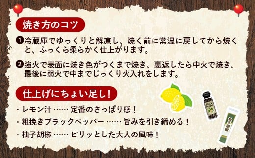 冷蔵庫でゆっくりと解凍し、焼く前に常温に戻してから焼くと、ふっくら柔らかく仕上がります。