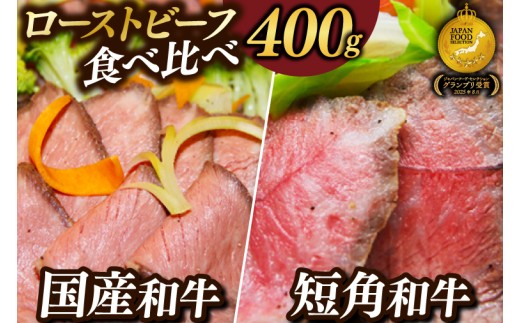 \年内発送/ ローストビーフ 食べ比べ 400g 短角牛 黒毛和牛 和牛 肉 牛肉 赤身 ローストビーフ セット スライス 小分け ソース付き ギフト 冷凍 人気 おすすめ ろーすとびーふ 岩手県産 (AB036-3)
