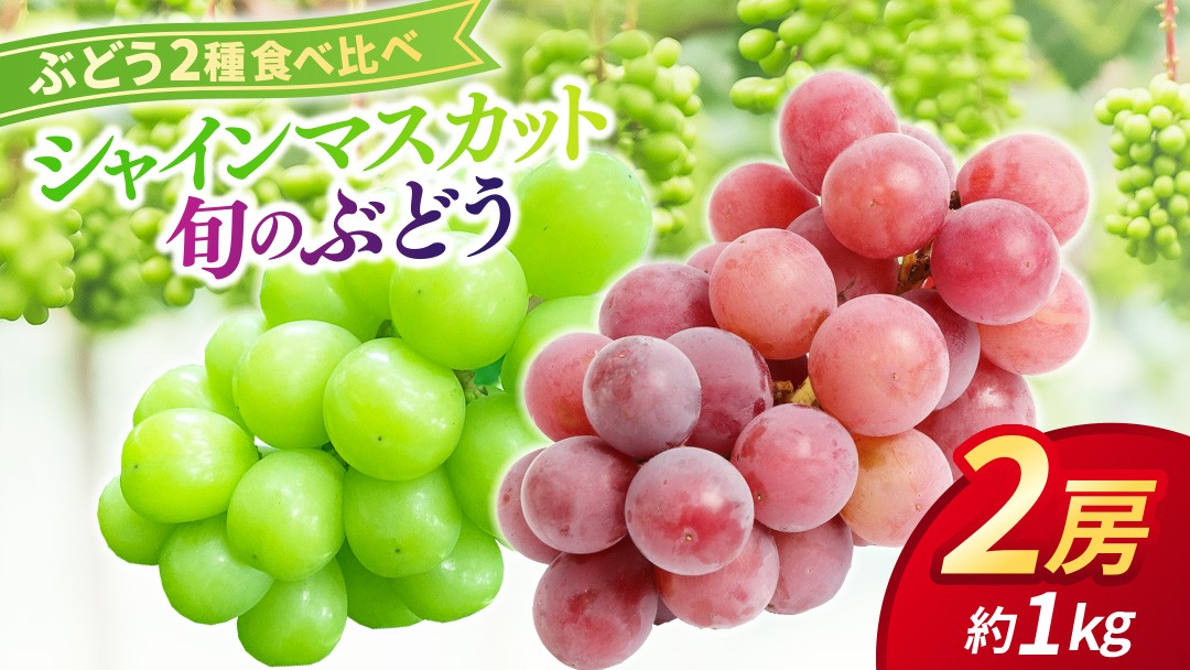葡萄 ブドウ セット アソート シャインマスカット ぶどう食べ比べ 2房(約1kg)旬のぶどう&シャインマスカット 【2026年9月下旬発送開始】 葡萄 ブドウ セット アソート シャインマスカット 安芸クイーン クイーンニーナ ロザリオロッソ ピオーネ 高妻 藤稔 採れたて 大粒 生産農家直送 農家直送 数量限定 果物 フルーツ 岩手県 (DH005)