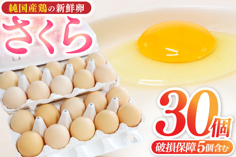 純国産鶏【さくら】純たまご 30個入り 破損保証5個を含む【たま…