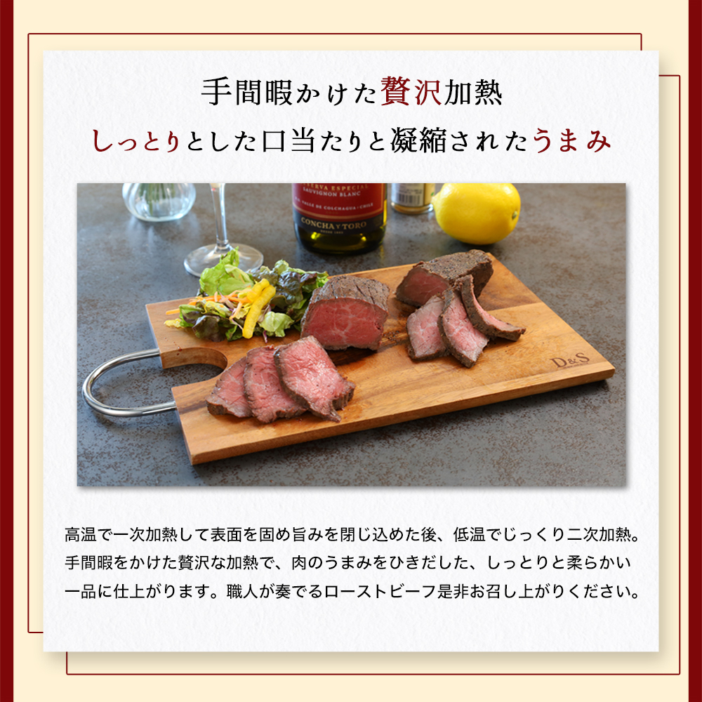 国産、海外原料を問わない、ローストビーフの2023年製造数12万個以上!熟練の技術の経験によりしっとり柔らかなローストビーフが完成! 黒毛和牛 とホルスタインの掛け合わせのみの東北産交雑牛、モモ肉のみを使用。黒毛 和牛 の脂がのった サシ と交雑牛の肉感でいいとこどり、まさに、 プレミアムローストビーフ です。