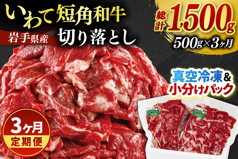 ヘルシーな赤身肉の「いわて短角和牛 切り落とし」を小分け真空冷凍パックでお届け! \3ヶ月連続 定期便/ 切り落とし 赤身 肉 牛肉 いわて 短角和牛 500g (総計 1500g) 小分けパック 真空冷凍 | 牛肉 肉 赤身 短角 和牛 国産牛 ブランド牛 切り落し 大容量 牛丼 肉じゃが 煮込み 煮物 小分け 真空パック 数量限定 (AB116)