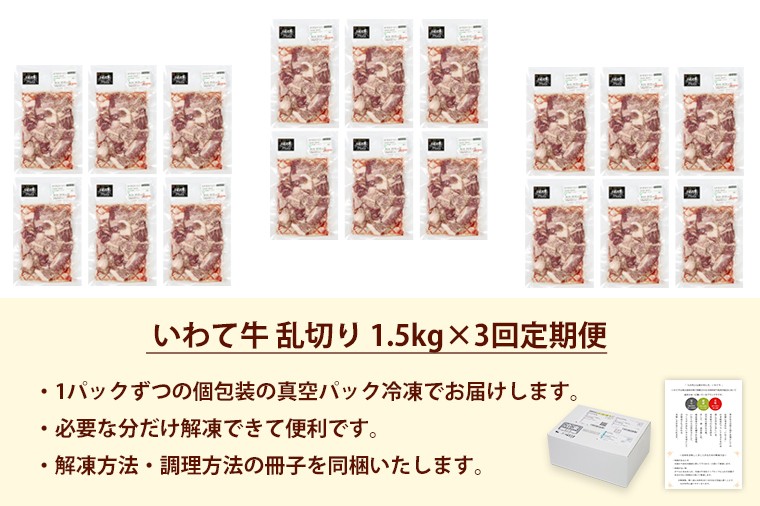 \全国最多日本一のいわて牛/ 大胆に贅沢に思う存分お楽しみください 【3か月定期便】黒毛和牛 いわて牛 乱切り 1.5kg (250g×6パック)【2026年7月中旬以降発送】(DV062)