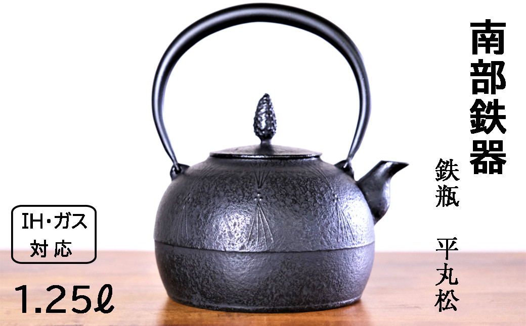 南部鉄器だけの上質で、日常の暮らしにやわらかなひとときを… 南部鉄器 鉄瓶 平丸松 1.25L 【IH対応】/ IH調理器 ih 伝統工芸品 やかん ケトル キッチン用品 食器 日用品 雑貨 伝統 職人 工房和秋