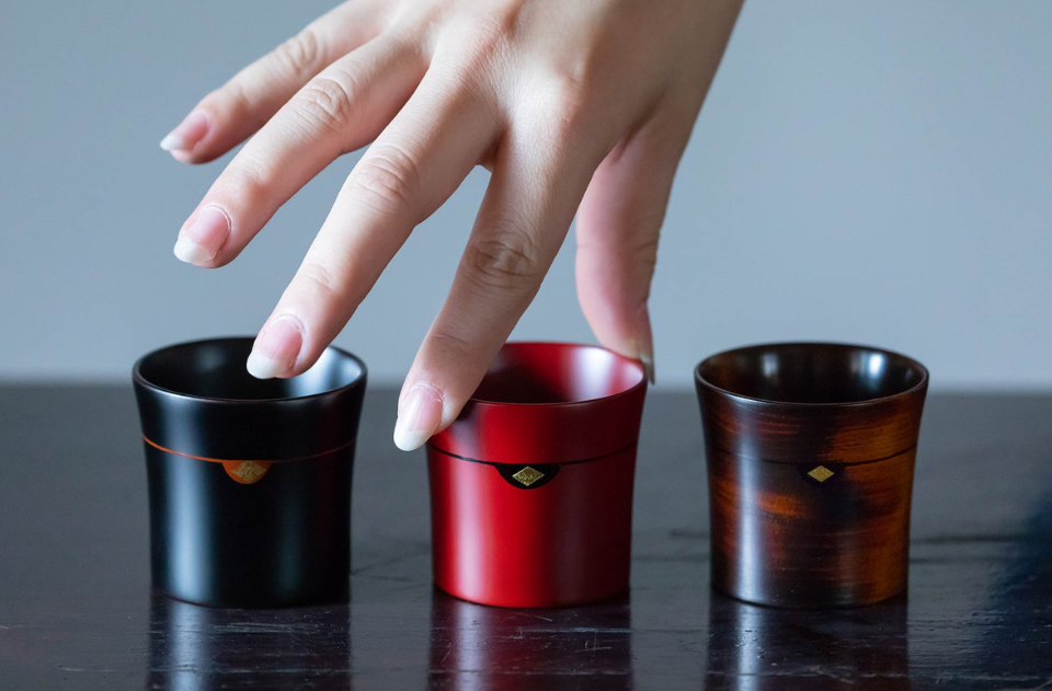 栃の木を使い、黒と朱に塗ったものと、栃の木の渋い木目をいかして拭きうるしをしたもの3種類用意しております。