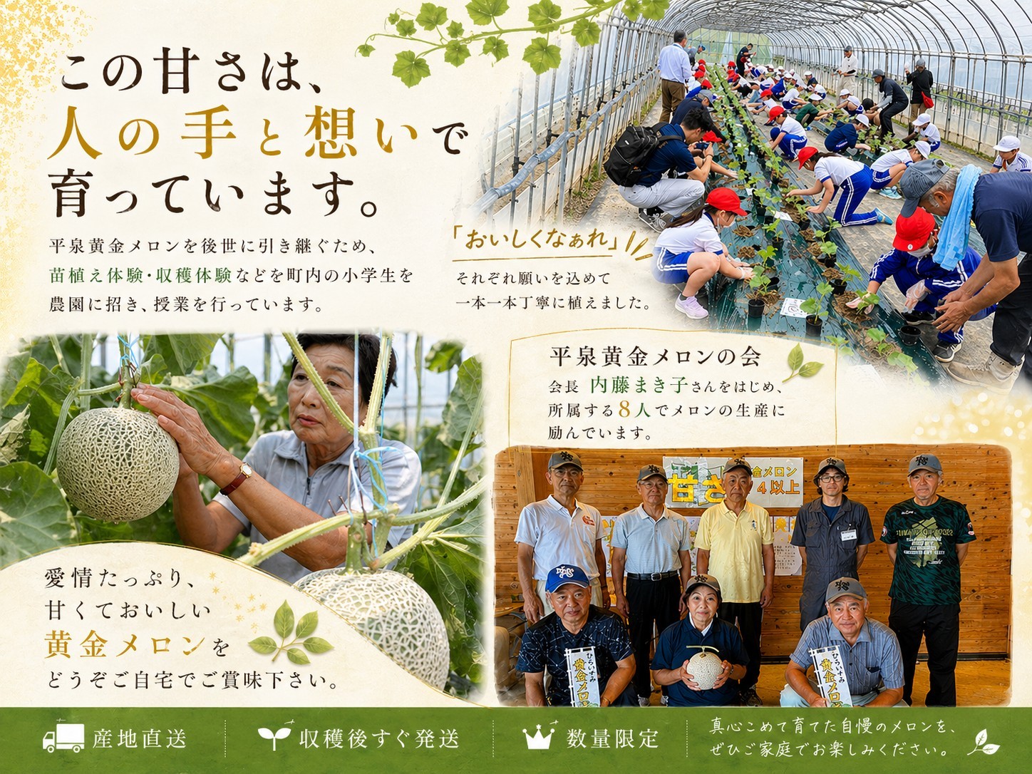 【令和8年度分予約受付】平泉黄金メロン 2玉 Lサイズ 合計約3kg…