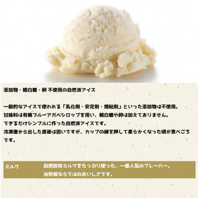 アイスは自然放牧ミルクをたっぷりと使った人気製品。乳化剤・安定剤・増粘剤などを使わず無添加で仕上げているため冷凍庫から出した直後は固いですが、カップの縁を押して柔らかくなると食べごろです。 甘味料も人気の高いブルーアガベシロップを使用しています。 ふつうのアイスでは味わえない、ミルキーな香りが楽しめます。 ■生産者の声 なかほら牧場のアイスには乳化剤や安定剤、増粘多糖類などの科学的添加物や卵を一切使用していません。 冷凍庫から出してすぐは正直少し固め。でもご安心を!美味しくお召し上がりいただくコツをご紹介します! 方法はとっても簡単。冷凍庫から取り出し、常温で5~10分待つだけ!カップの側面を押して少し柔らかくなったら食べごろのサインです! 季節・気温によっても待ち時間が異なるので、時間は目安として、時々カップの側面を押してみて、柔らかなくなるまで少しだけお待ちください。 また添加物を使っていないため、溶けた後に再凍結すると少しザラザラとした食感になってしまいます。 再凍結させずにお召し上がりください。 甘党好きにおすすめ! お礼品登録をしているミルククリーム キャラメル or カフェショコラ をかけて召し上がってみてください! 口の中で混ざり合ったときのミルキーな味わいが非常に美味しいです!