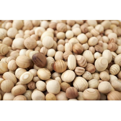 ヒノキやスギなどの針葉樹に比べ、一般的に広葉樹は“木の香り”は薄くわかりにくいのですが、缶を開けた瞬間はその木特有の香りをお楽しみいただけます。缶詰にする事で、木材特有の狂い(割れ・捩れ・反り)を抑え、且つカビ等雑菌の発生も有りません。大手製缶メーカーでの検証実験及び6年間の実証期間を経て確認済みです。1缶に入っている木のたまごは20~30個で全て同じ樹種です。「木のコレクション・標本」として全て揃えると80種類の樹木の、色んな違いも手にとって実感できます。