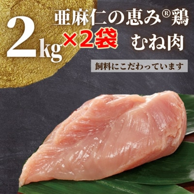 <亜麻仁成分を配合した飼料で育ったとり肉>亜麻仁の恵み(R)鶏 むね肉 2kg×2袋【1111021】