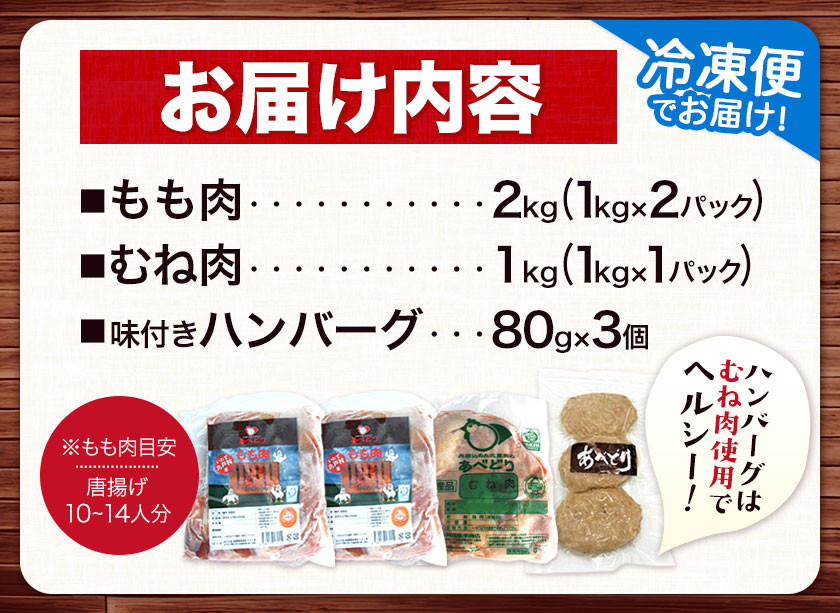 商品情報:【あべどり】もも&むね&ハンバーグセット