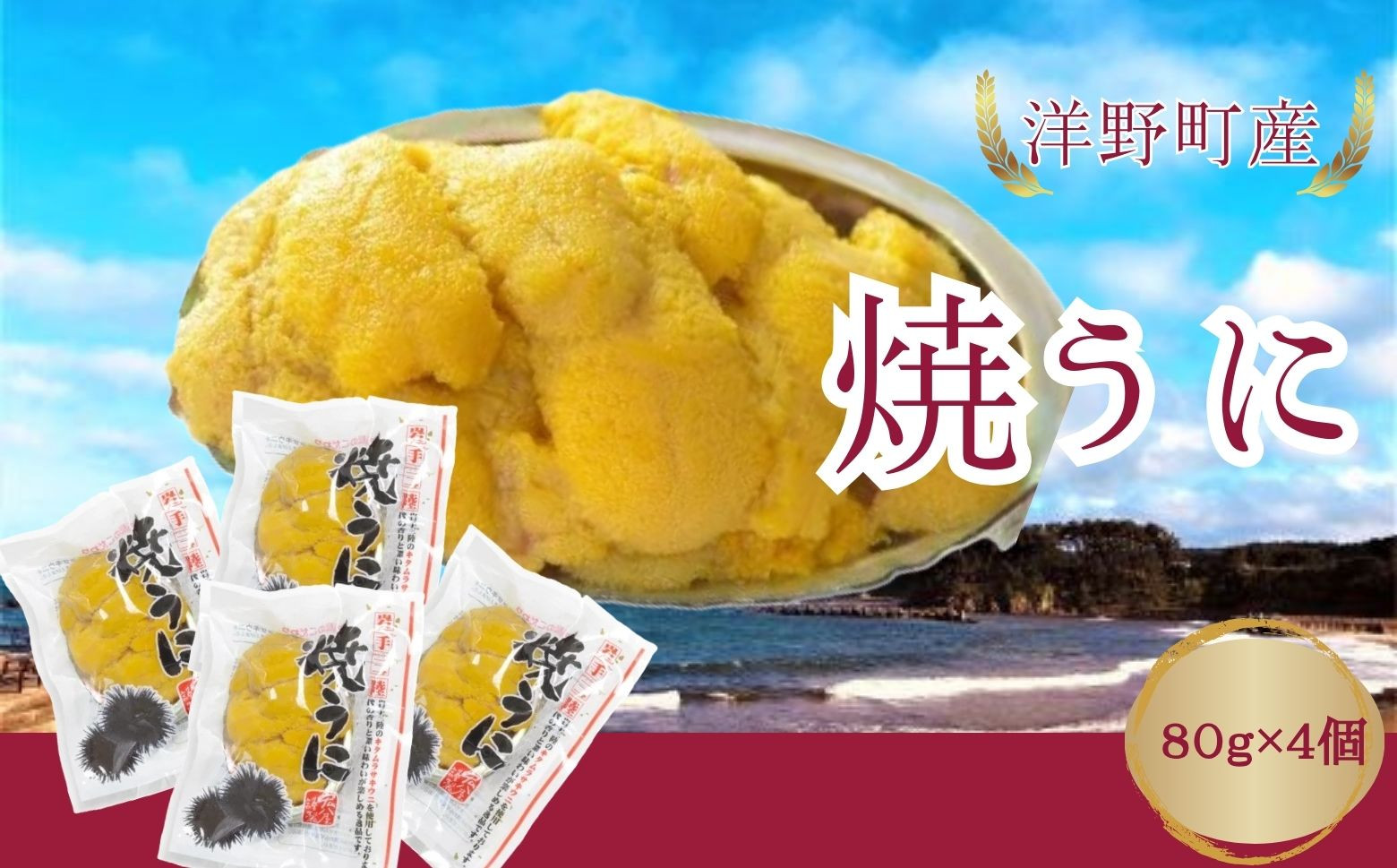 濃厚な甘みのある焼ウニを4つセットにしました 焼うに 80g×4個 キタムラサキウニ