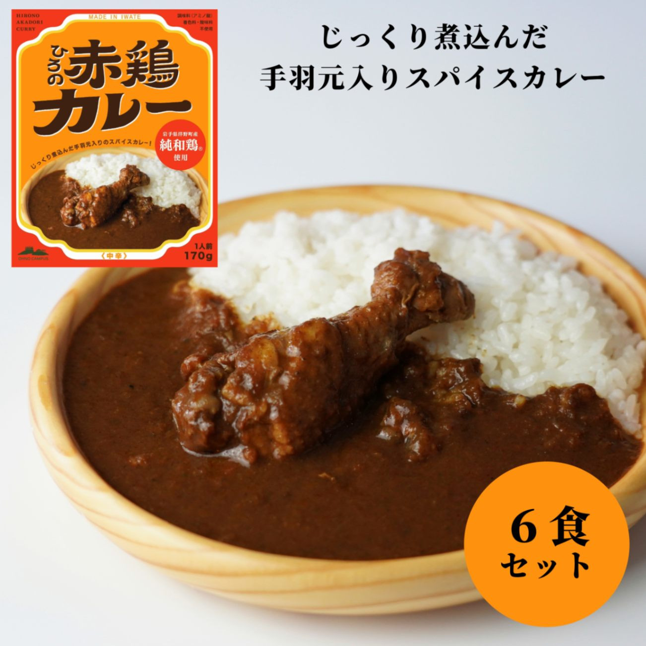 じっくり煮込んだ手羽元入りスパイスカレー ひろの赤鶏カレー6食セット