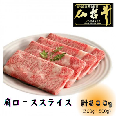 <A5ランク仙台牛>肩ロース計800g!! すき焼きしゃぶしゃぶ用(500g×1P+300g×1P)【1477868】