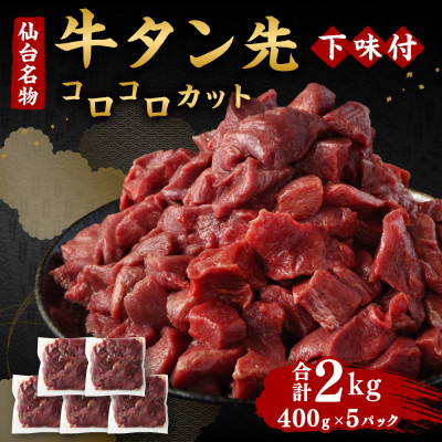 仙台名物 牛タン先 コロコロカット 下味付 400g×5パック 合計2kg 煮込み用【1486799】