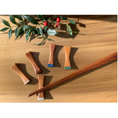 仙台市のシンボルである欅、仙台箪笥の塗料にも使われる漆を素材とし、伊達の陣羽織に使われた伊達五色をモチーフにした箸置きです。
