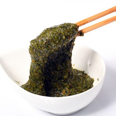実は「生のめかぶ」は濃い茶色をしています。一般的にスーパーに並んでいるのは、緑色をした「味付けめかぶ」で、湯通しし食べやすいよう加工しています。