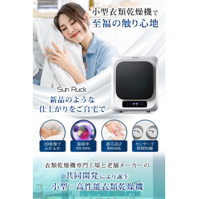 SunRuck ドラム式小型衣類乾燥機 乾きくん SR-ASMN206-GY グレー【1592124】