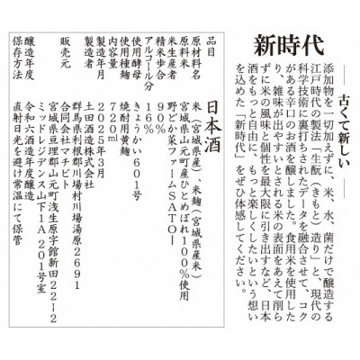 日本酒をもっと自由に、もっと楽しく!を掲げて作った『新時代』をぜひどうぞ。数量限定のお酒です。