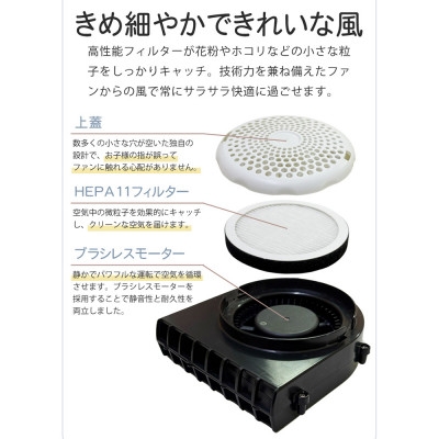 高性能フィルターが花粉やホコリなどの小さな粒子をしっかりキャッチ。