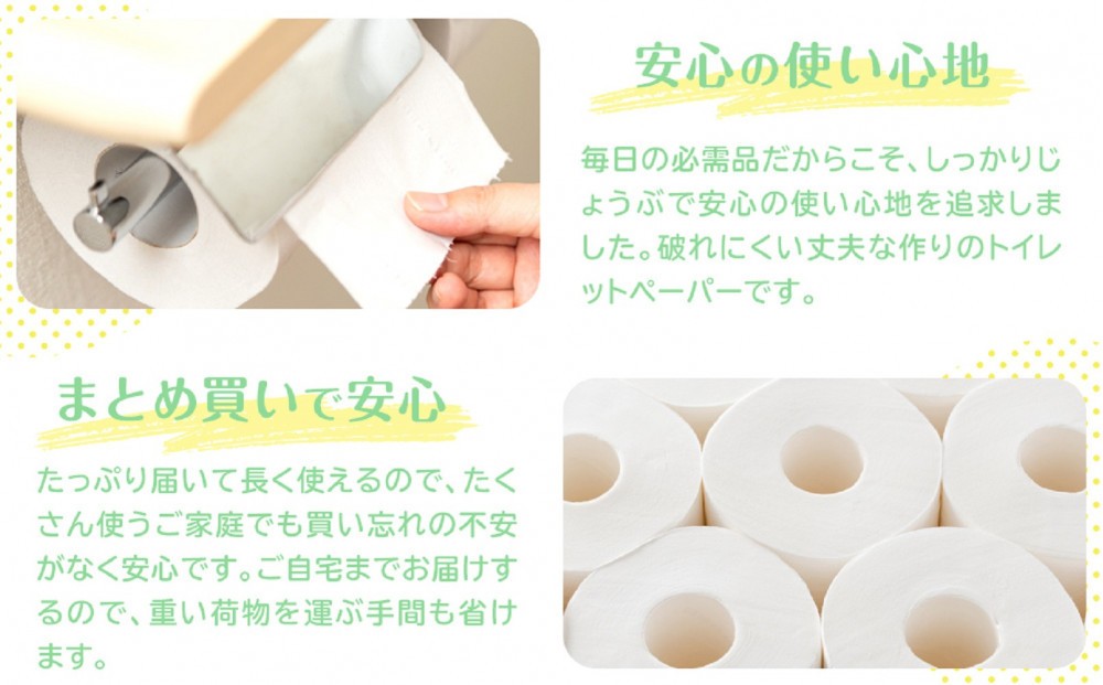 再生紙100%へのこだわりが、人と地球にやさしい高品質の製品を届けます。 かさばる買い物いらず! 再生紙トイレットペーパーをたっぷりお届け! 毎日使うものだからエコを選ぼう! 長期保存に最適! 無香料なので匂い移りせず、長期間の保存にも安心。 梱包サイズ 幅 80.5cm 奥行 40.5cm 高さ 32.5cm 重量:ケース約12kg 【配送不可地域】 沖縄県・離島(一部除く)への配送はお受けできません。 事業者:合資会社 高清商会 連絡先:022-284-2411 関連キーワード:トイレットペーパー 雑貨 日用品 人気 おすすめ 送料無料