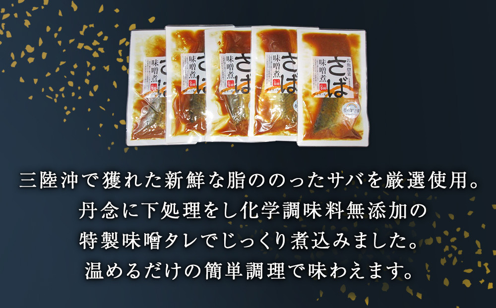 骨まで柔らかく仕上げた化学調味料無添加のさばの味噌煮です。 レトルト さば味噌煮 5袋 常温保存 和食 惣菜 鯖の味噌煮 骨まで柔らか 国産 化学調味料無添加 厳選 下処理済 さばフィレ サバフィーレ 調理済み 簡単 おかず 保存料不使用 さば 鯖 魚 青魚 宮城県 石巻市 山徳平塚水産