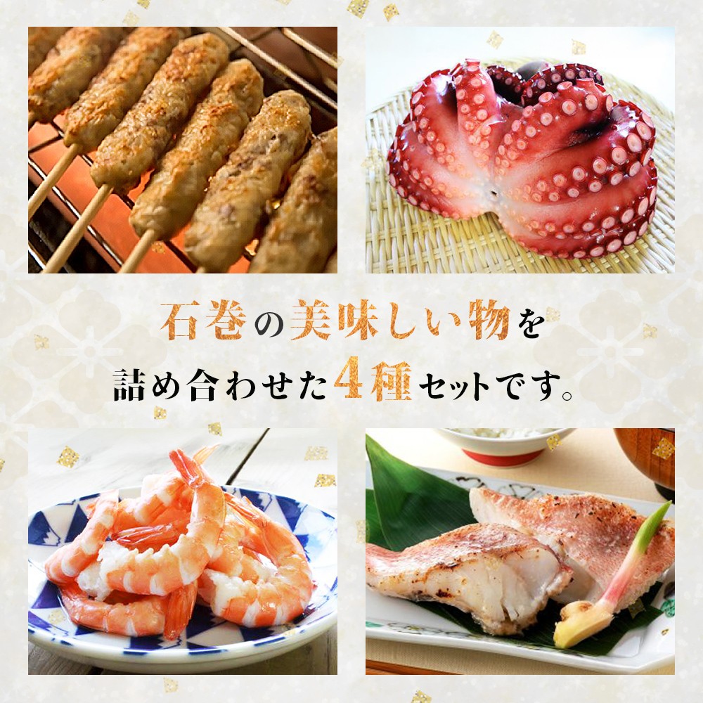 三陸・石巻の海と、宮城ならではの食材を贅沢に盛り込んだ、人気の4種セット。