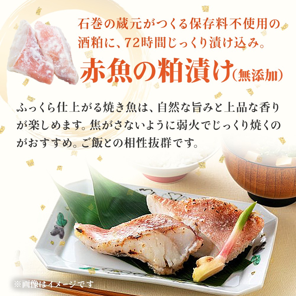 石巻の蔵元がつくる保存料不使用の酒粕に、72時間じっくり漬け込み。