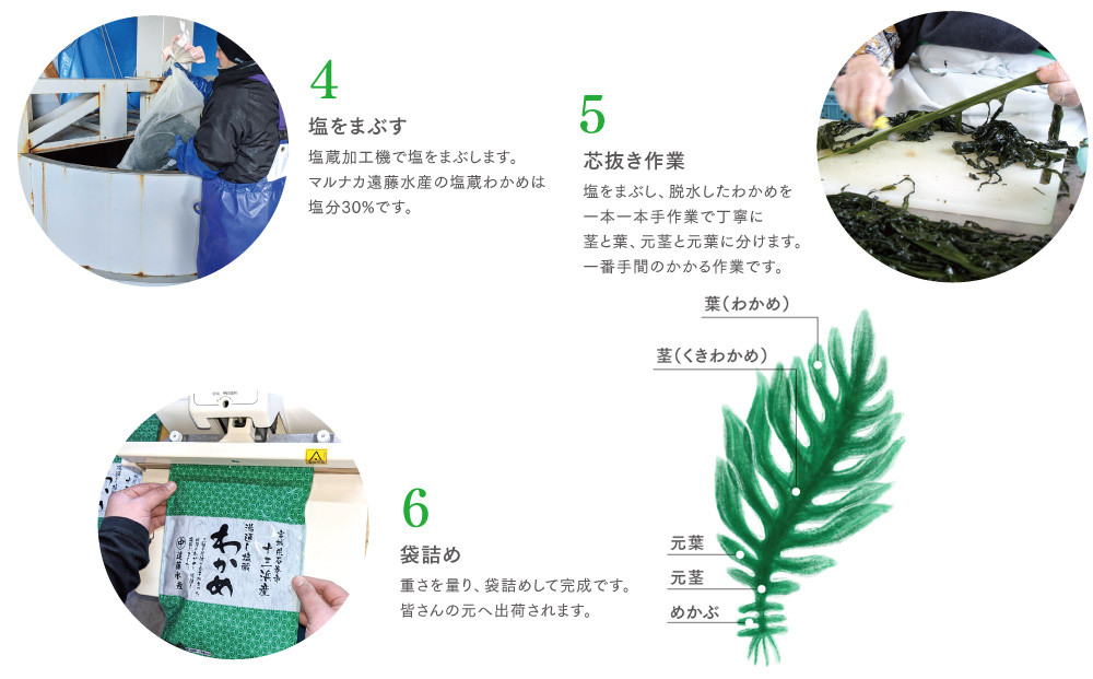 【十三浜産塩蔵わかめ】流水でふり洗いしながら塩抜きしてご使用ください。
