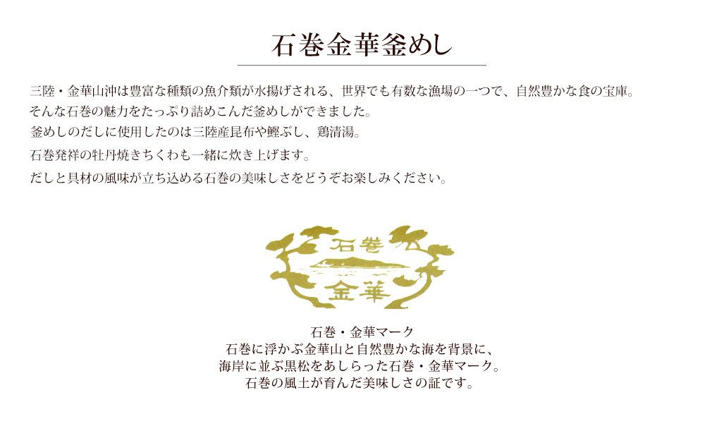 石巻の恵みを詰め込んだ「金華釜めし」と、具材の旨みが染みわたる「金華茶漬け」。