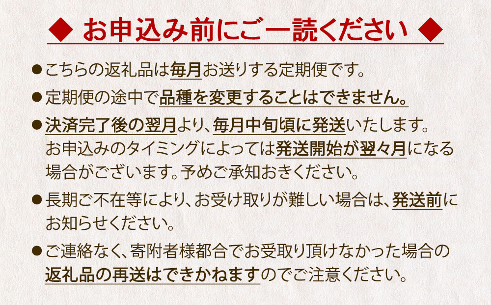 ふるさと納税で、美味しさと安心を“毎月”お届けいたします。